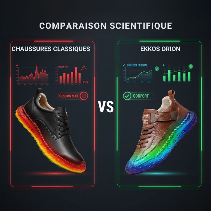 Les semelles plates des chaussures classiques ignorent l'anatomie de votre pied et concentrent la pression sur quelques points précis, créant douleur et fatigue.